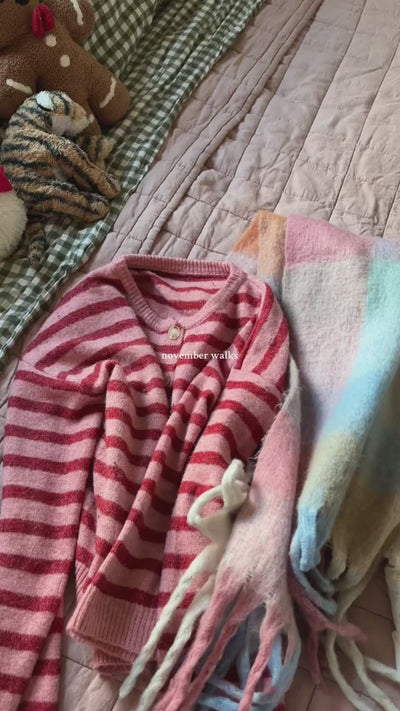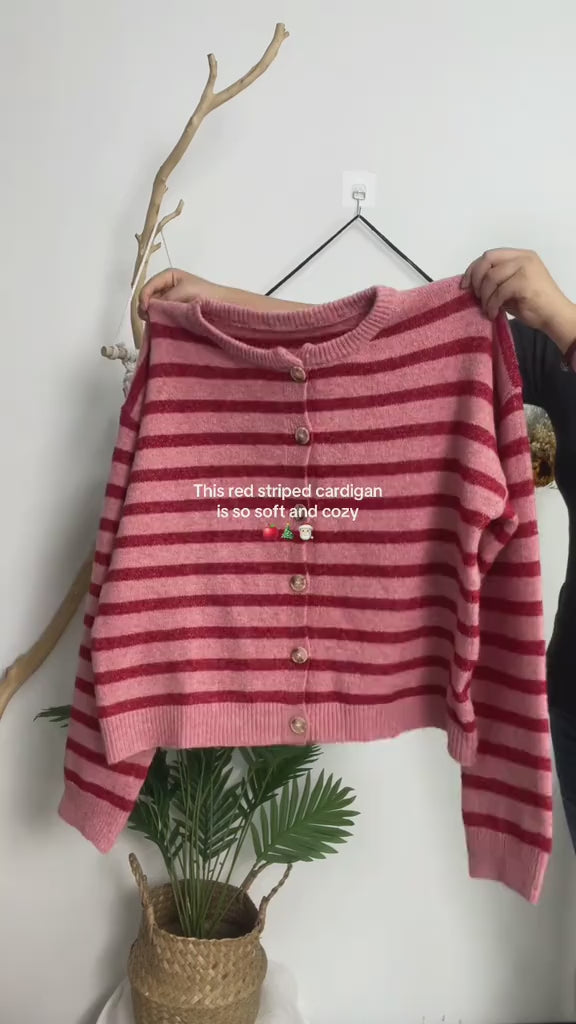 A timeless striped pattern adds instant character and vintage charm, making this cardigan stand out while staying easy to style with everyday outfits.