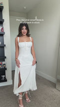 Curvvvy® Structured Bust Ruched Tie-Front High Slit Midi Dress