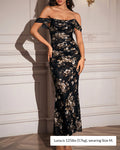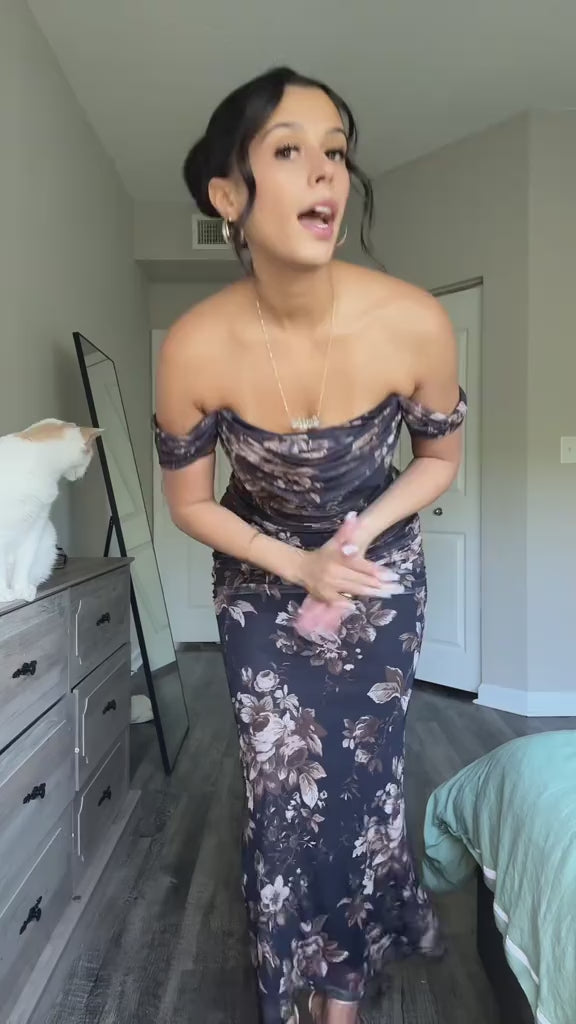Curvvvy® Floral Mesh Off-Shoulder Ruched Bodycon Maxi Dress
