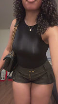 Curvvvy® Washed Faux Leather Micro Cargo Shorts