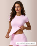 High crew neck provides modesty and structure for confident movement. Cropped length perfectly pairs with high-waisted bottoms for an elongated, balanced look.